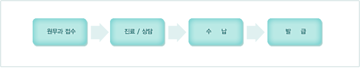 외래진료를 통해 담당의사와 삼담한 후, 발급된 제증명서류를 원무과 제증명 발급창구에 제출하여 병원직인, 담당의사의 날인을 |